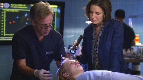 Hawkes brings Declan “Sully” Sullivan, a ghost hunter who films documentaries about the supernatural world, to the precinct to consult on the case. When Sully tells Hawkes, Flack and Lindsay that he uses sulfur to form a protective circle around the area he stands in before he starts filming, Lindsay realizes it was Sully who grabbed the girl in the park. He admits that he did, telling the CSIs she ran into him and that he was trying to help her, but she just ran off. Sid surprises Mac when he tells him that the second woman appears to have died in 1995; salt from the park appears to have delayed decomposition. The second woman was apparently bludgeoned and stabbed to death, and the CSIs can find no link between them other than that both of their bodies were found in the park. Jo, Hawkes and Adam view Sully’s video of the night the first victim died, and they find the woman was running from the 72nd Street entrance. Sid discovers the woman died from nitrous oxide poisoning; the gas reacted badly with her antidepressants. Jo realizes the woman was likely hallucinating before she died. Sid shows Jo bruises under the woman’s arms that rose to the surface. He also notes that someone must have moved her shortly before her death, likely when she was unconscious. Jo surmises that while the woman wasn’t sexually assaulted, she was likely redressed, and she wonders if the man may have left prints behind. Using superglue, Jo and Sid recover prints from under the woman’s armpits. Hawkes gets an ID on the first woman: Isabel Wilde, a fifth grade teacher, but blood trace found on her is a match to a man who died five years ago. Lindsay discovers trace in Isabel’s hair is mortician’s makeup, leading the CSIs to wonder if Isabel was in a morgue before her death.